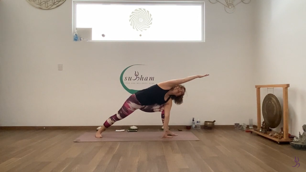 Siente como se mueve la energía en cículos mientras realizas esta secuencia que trabaja con torsiones, estiramientos y posturas de balance y equilibrio.